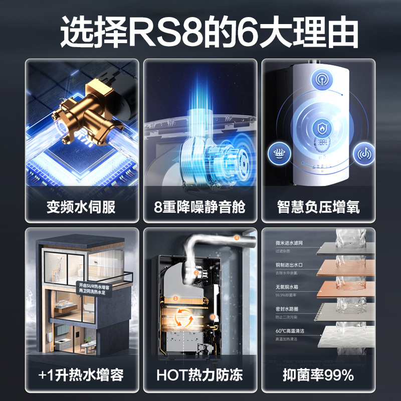 万家乐RS8水量伺服恒温燃气热水器13L家用变频静音天然气16升PS8