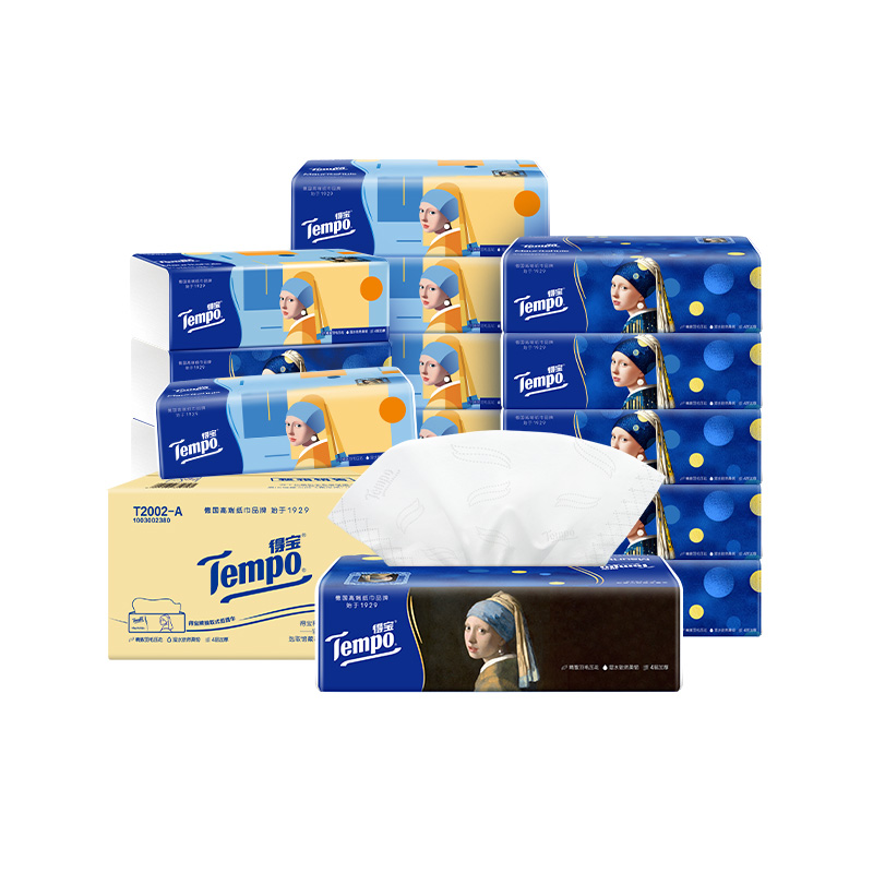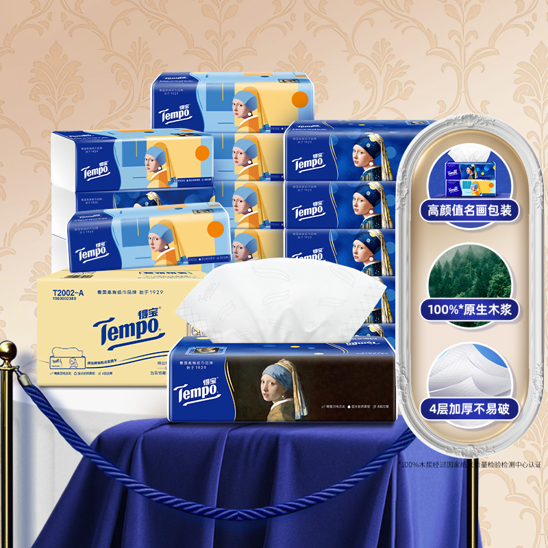 [王一博同款]tempo得宝软抽纸巾4层加厚100抽16包/48包任选家用纸