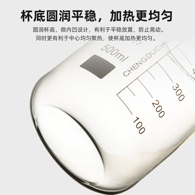 蜀牛玻璃烧杯实验器材耐高温带刻度100带把250带柄500化学1000ml