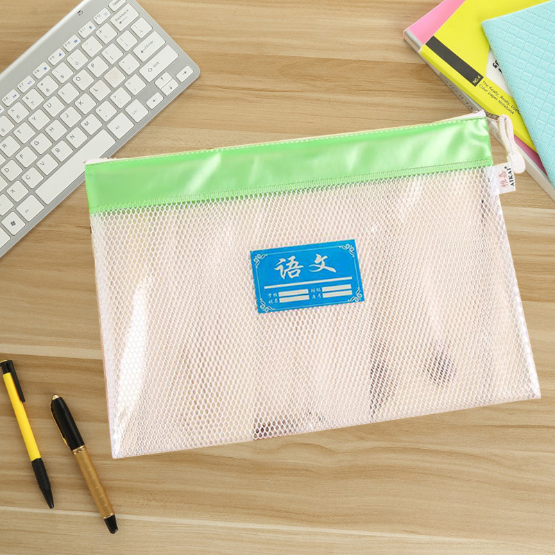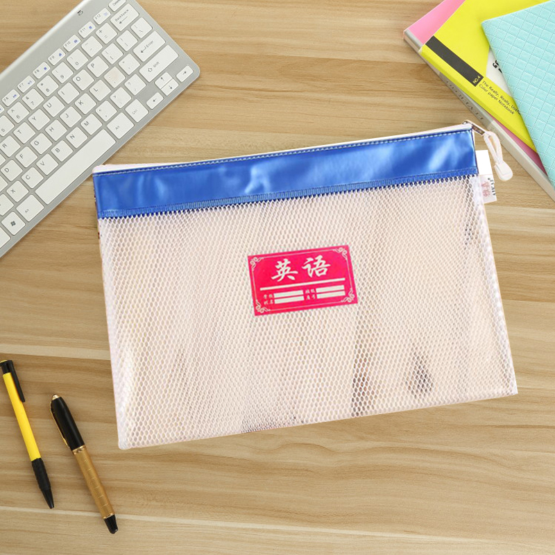 学科科目分类文件袋拉链式双层大容量小学生用资料书本课本分科书袋试卷收纳袋学生装卷子作业袋子A4透明网纱