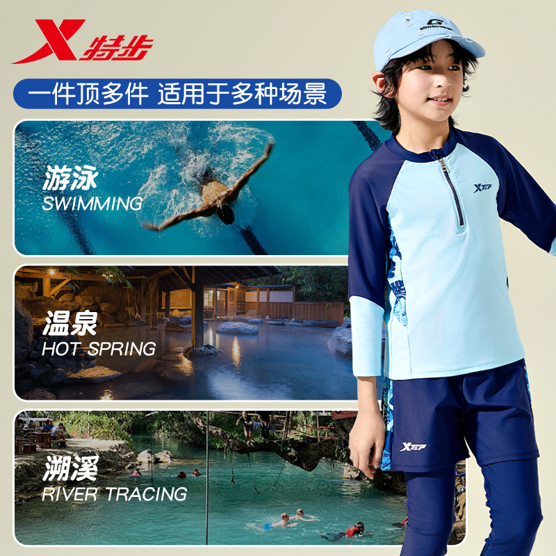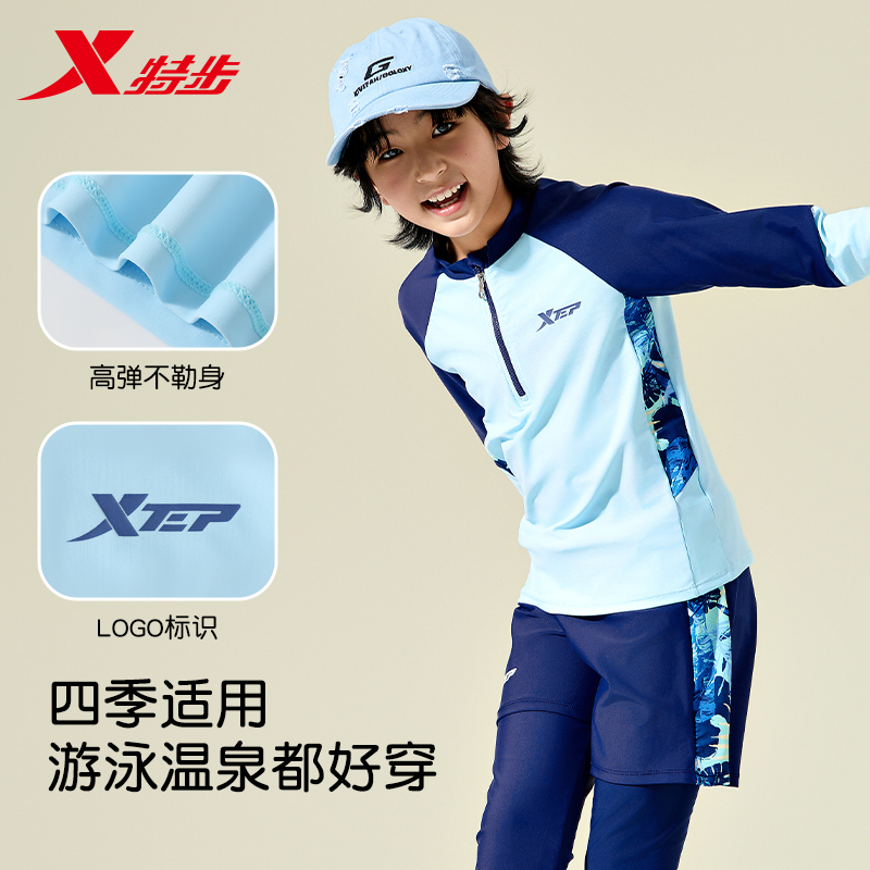 特步儿童男童长袖泳衣中大童长裤分体游泳衣2025新款青少年泳装