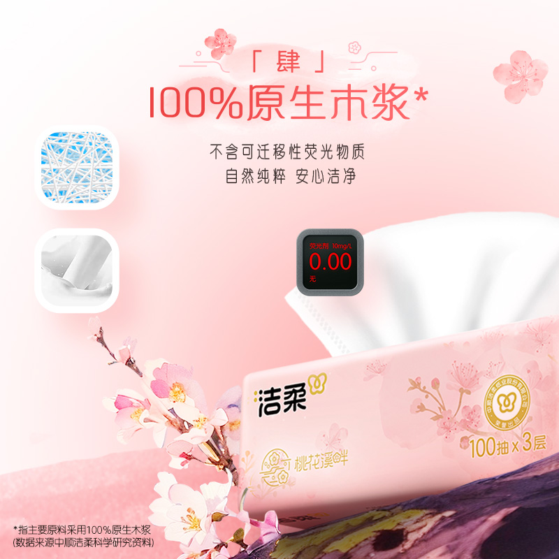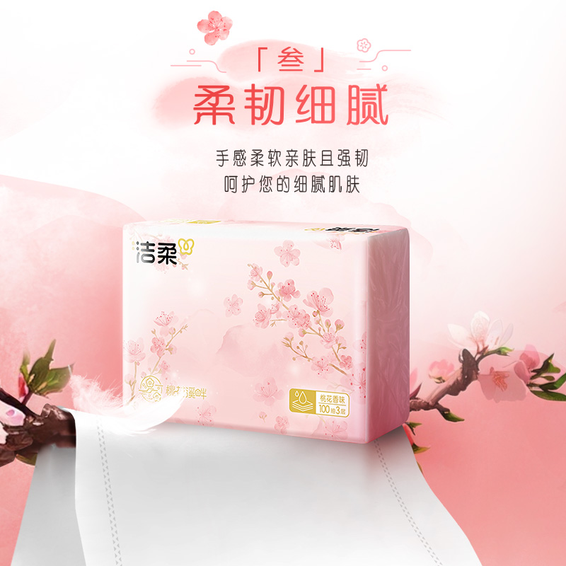 洁柔桃花香抽纸3层100抽5包家用面巾纸餐巾纸亲肤可湿水擦手纸
