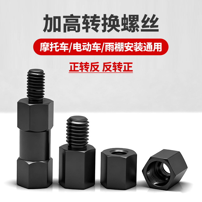 304不锈钢摩托车电动车后视镜增高螺丝反光镜转换加高柱转接M8M10