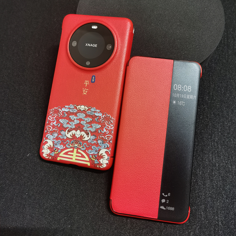适用华为Mate60全包智能显示手机壳mate60pro中国风翻盖套mate30pro防摔素皮套新款保护壳mate40pro可接电话