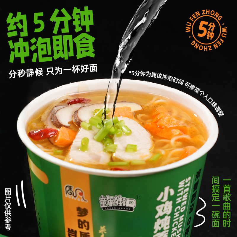 【10桶装】童年街口小鸡炖蘑菇面方便面泡面免煮冲泡速食桶装夜宵