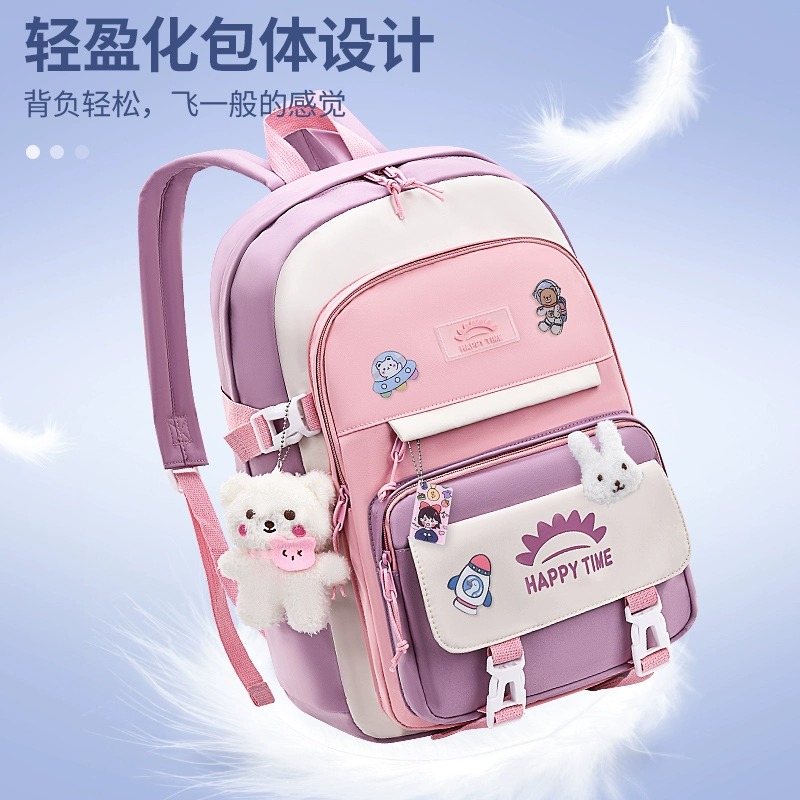 书包耐脏女生韩版ins风可爱挂件简约减负护脊超轻新款大容量背包高中生初中生小学生儿童三到五六年级双肩包