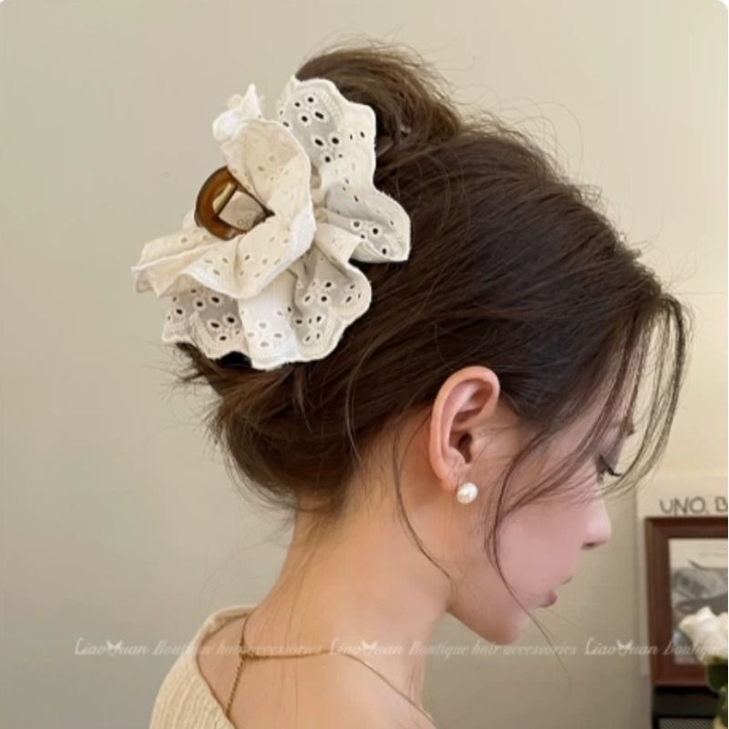 抓夹鲨鱼夹法式复古蕾丝花边头发女高级感2025新款发夹后脑勺发饰