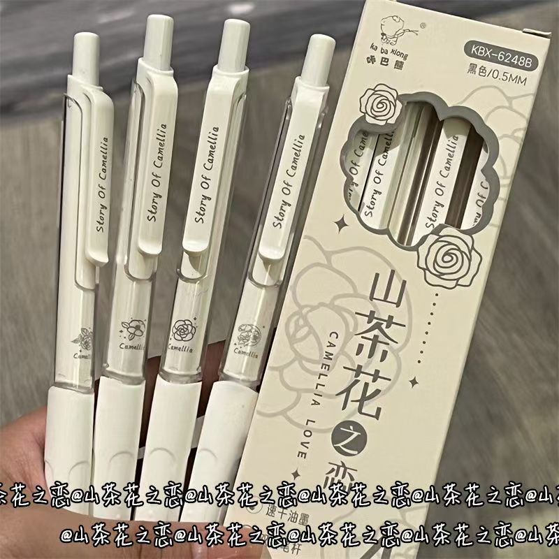 咔巴熊山茶花之恋按动中性笔ins简约风速干ST头0.5黑笔学生考试用