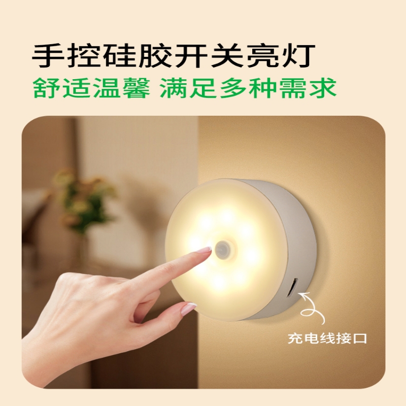充电款床头小夜灯卧室睡眠灯带开关拍拍灯创意氛围小台灯磁吸壁灯