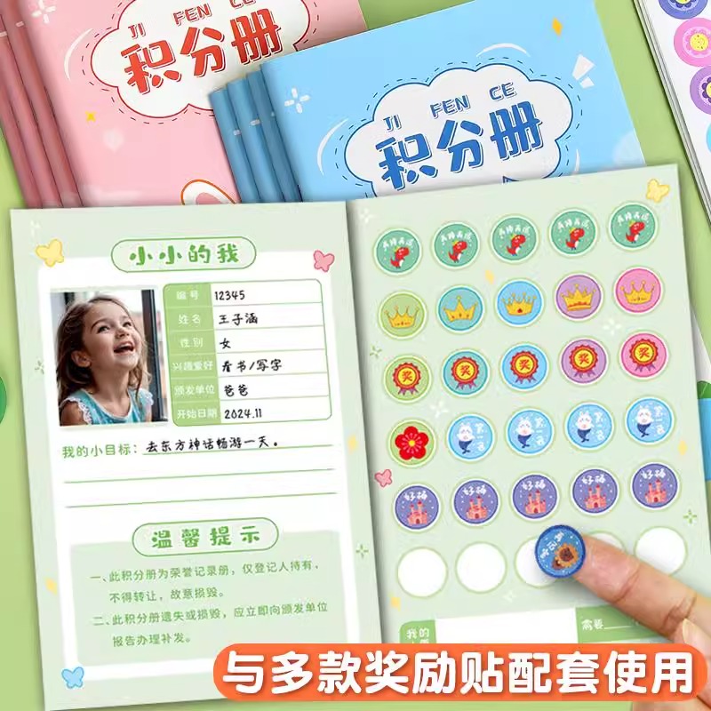 积分册积分本心愿兑换存折集章册小学生幼儿园奖励孩子积分卡奖励贴纸盖章本小红花收集本家庭儿童印章学习册