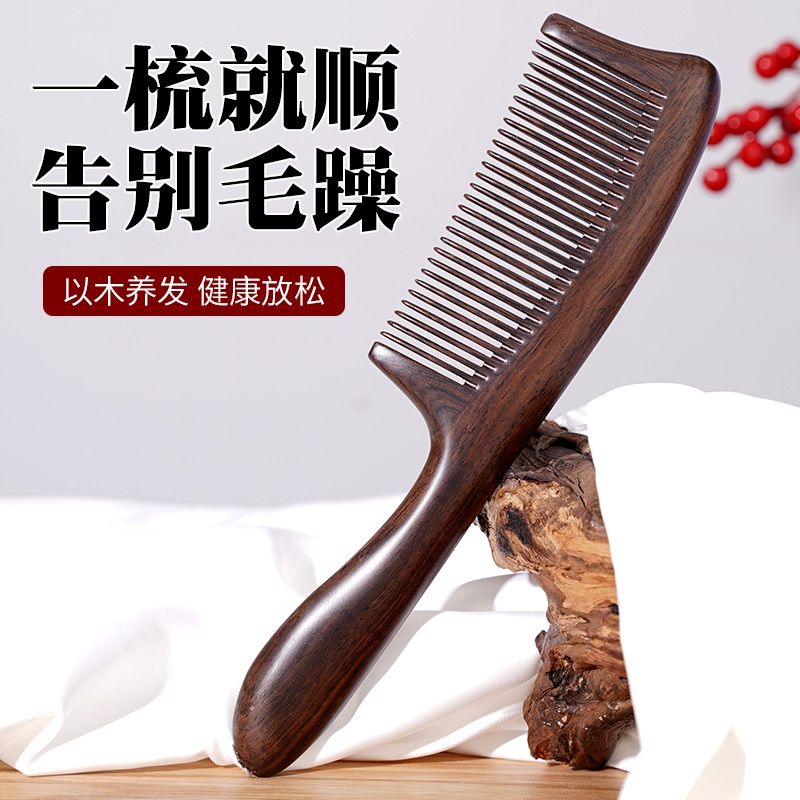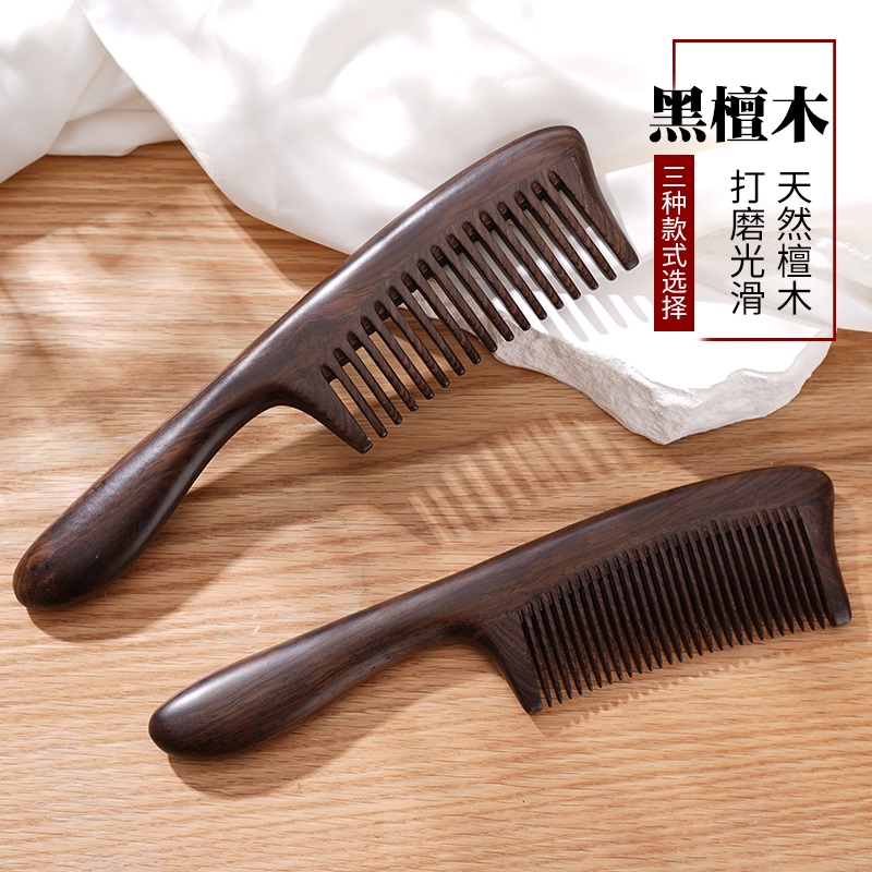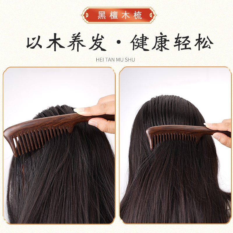 加厚天然黑檀木梳子按摩梳宽齿木梳按摩头皮经络防排骨梳静电大号