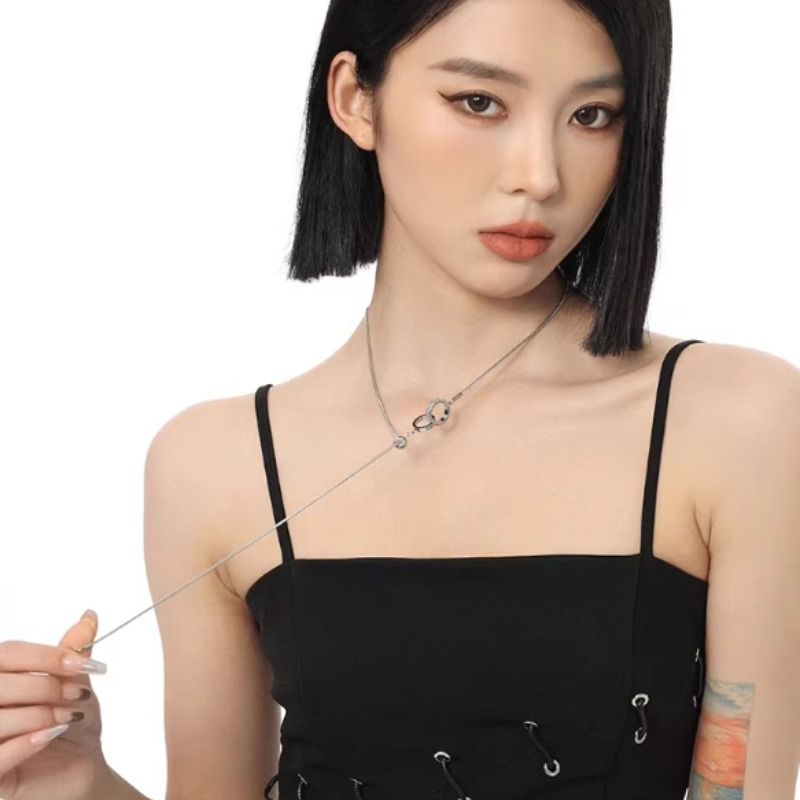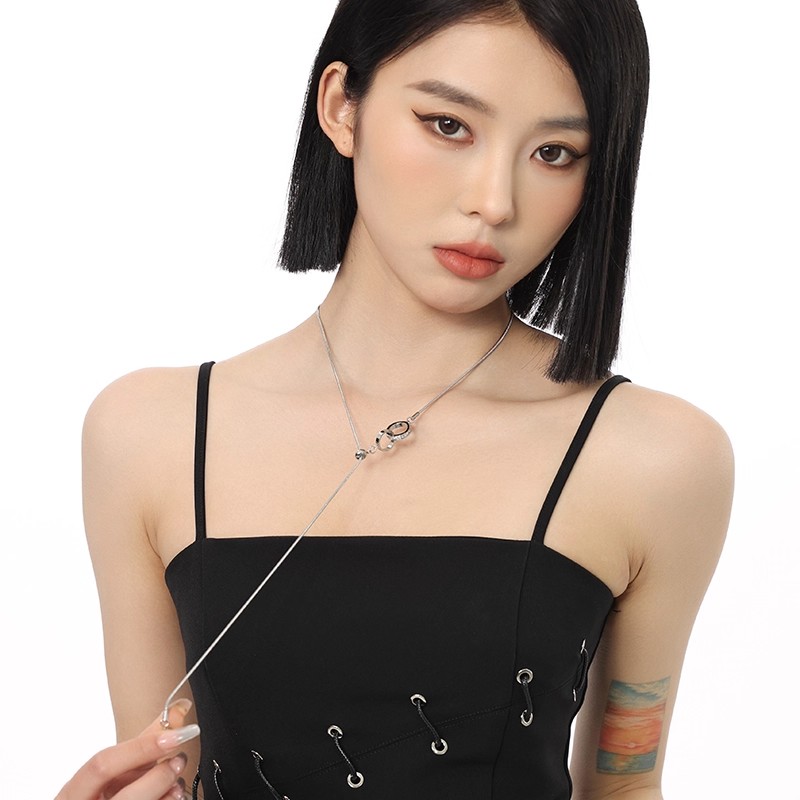 双环长款钛钢项链女可抽拉转运圆环毛衣链女生轻奢小众高级感配饰