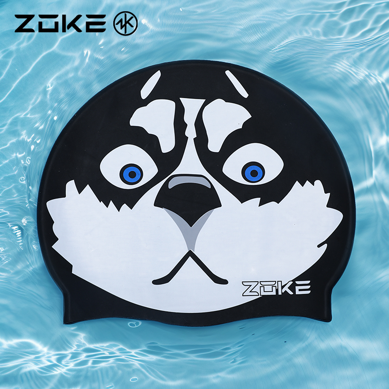 洲克泳帽硅胶防水护发护耳游泳训练zoke哈士奇男女通用不勒头浴帽