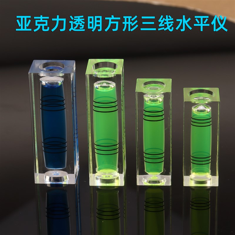 高精度长方透明水k平泡水平仪压克力透明三线 缐方形水准器迷你水