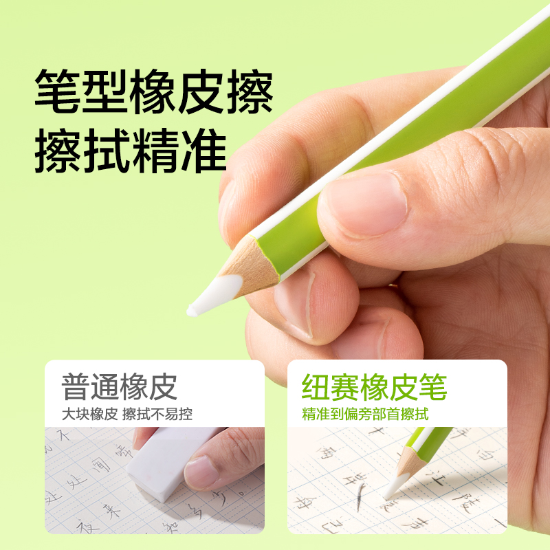得力纽赛橡皮笔可擦橡皮无碎屑干净不留痕真集屑橡皮铅笔儿童橡皮防丢擦字成线素描美术生专用笔型橡皮擦