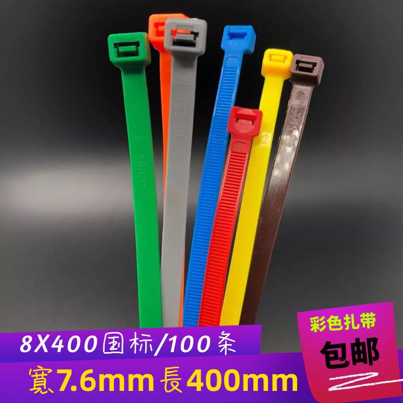 大尺码红黄蓝绿8X400国标彩色XGS尼龙扎带强力工业卡扣包邮