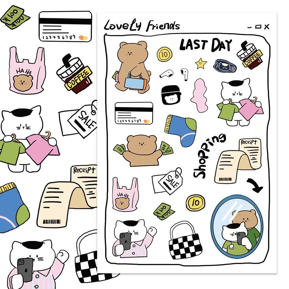 8张原创当小熊遇上小猫咕卡贴纸手账本diy手机壳咕盘小卡装饰贴画