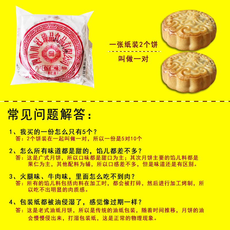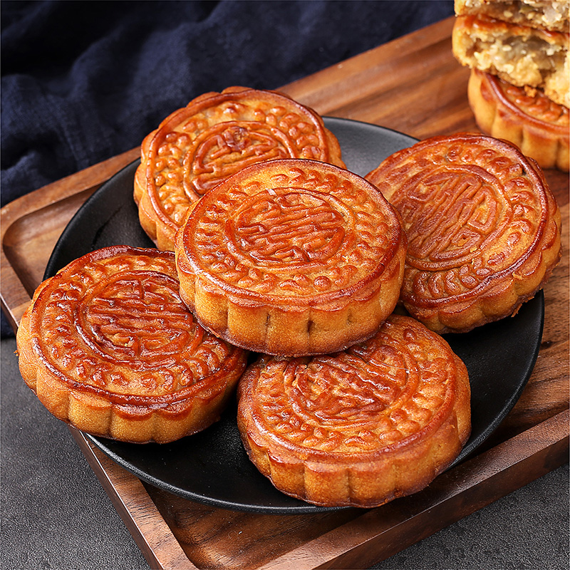 四川中秋伍仁月饼老式传统广式糕点油纸对装牛肉火腿冰桔椒盐豆沙