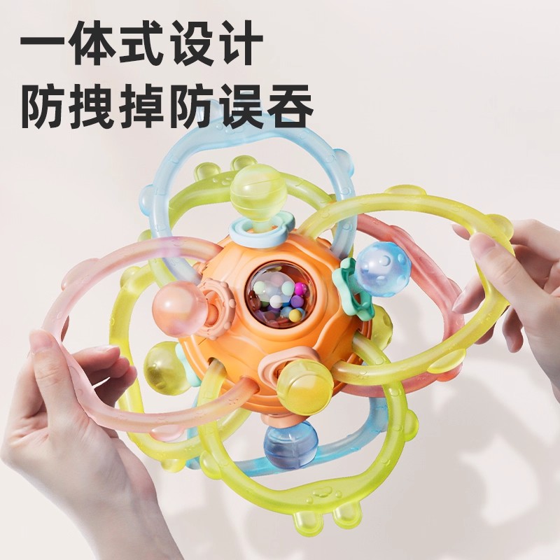 曼哈顿手抓球婴儿玩具硅胶可咬牙胶小月龄宝宝3到6个月摇铃0一1岁