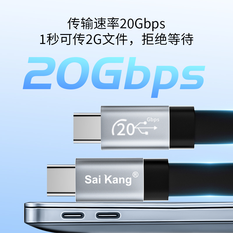 全功能双头type-c数据线黑色扁平快充线4K高清线100W公对公3.2线车载充电连接线适用安卓手机平板笔记本电脑