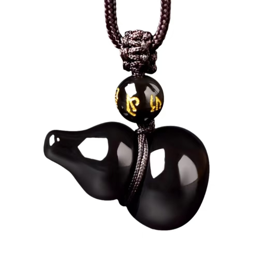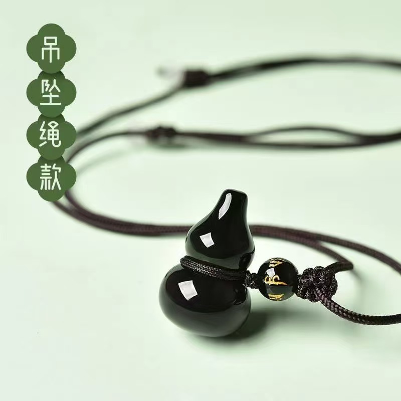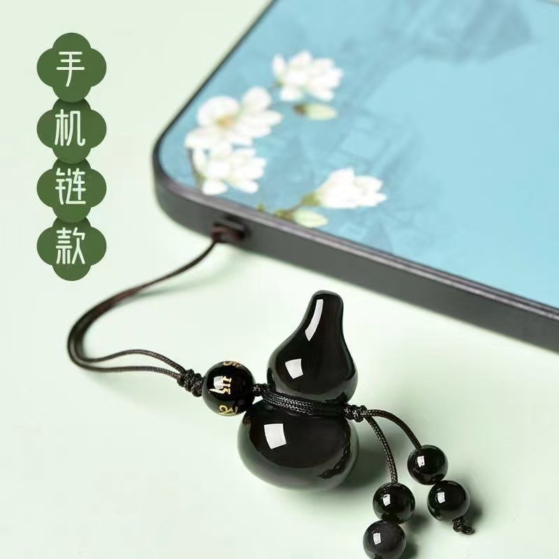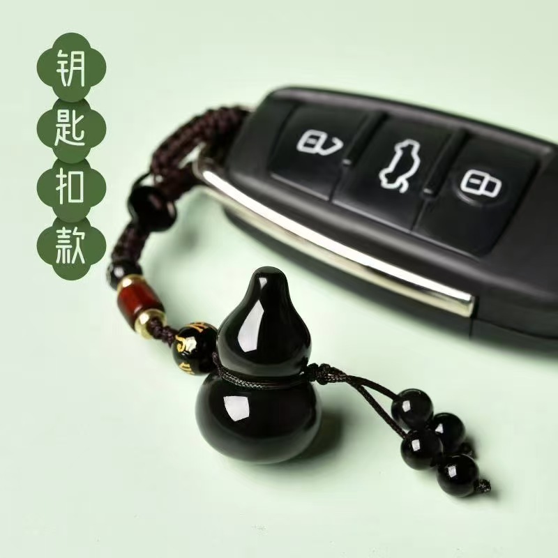 天然黑曜石葫芦吊坠黑耀石水晶饰品挂件钥匙扣手机链挂坠项链男女