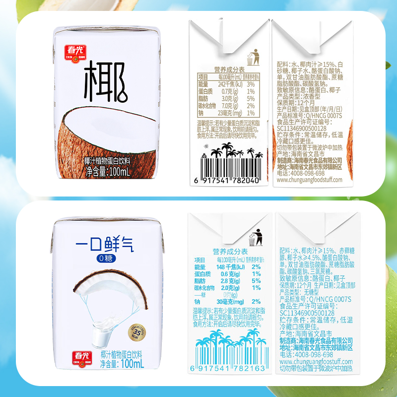 春光海南特产椰汁椰奶椰乳植物蛋白饮料生椰拿铁咖啡0糖椰子汁