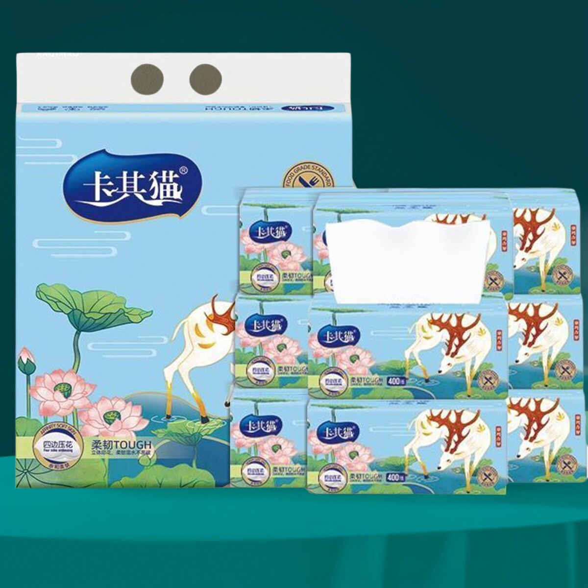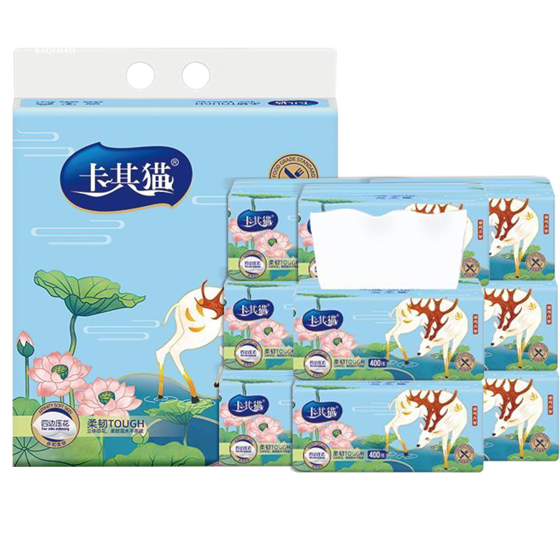 卡其猫国潮抽纸可湿水面纸巾家用擦手纸餐巾卫生纸5层加厚抽取式