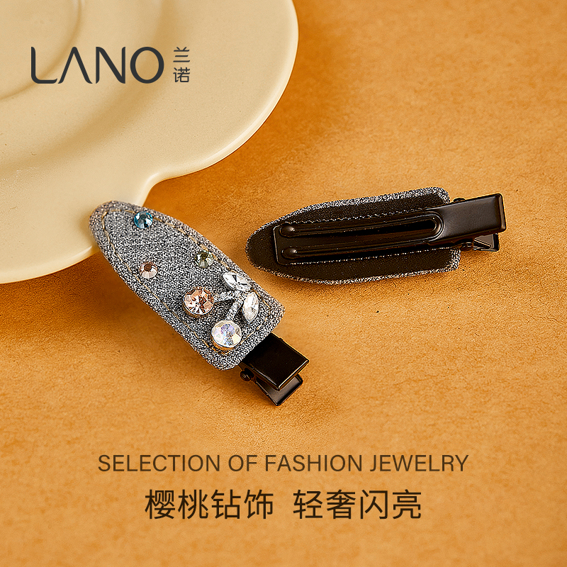 兰诺水钻樱桃发夹女2025新款高端侧边夹前额刘海夹儿童鸭嘴夹对夹