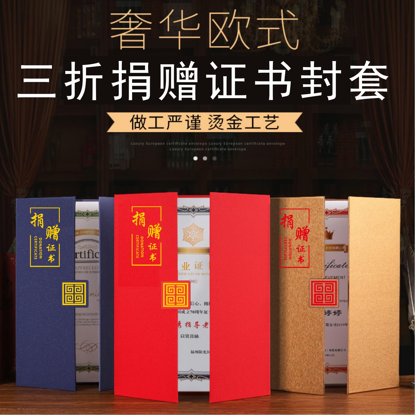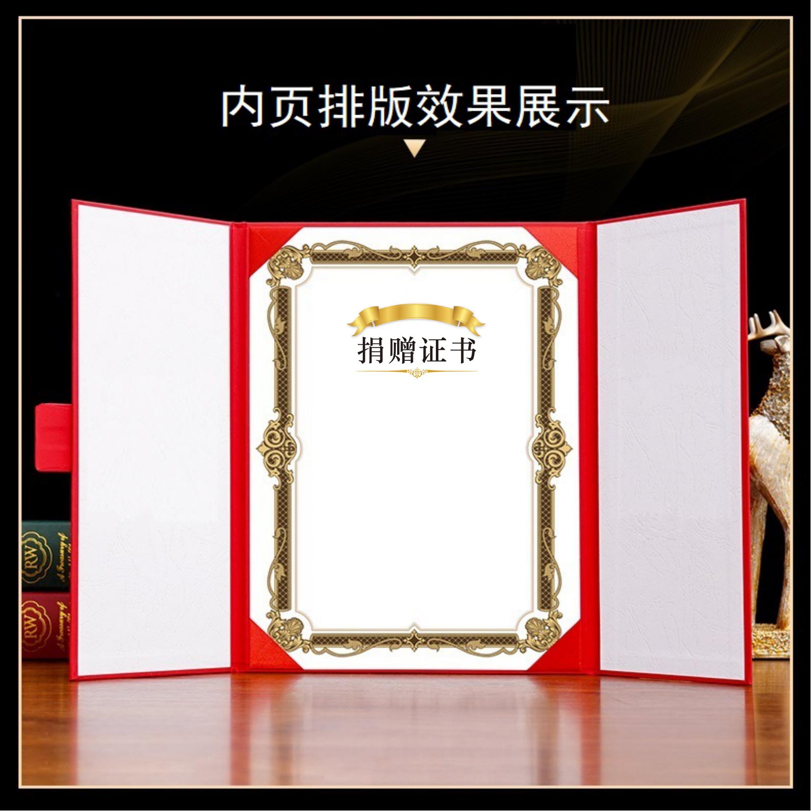 炜顺A4捐赠证书捐赠证明书慈善募捐纪念本三折烫金捐赠书封面外壳定制志愿者感谢信内芯内页公益表彰爱心证书