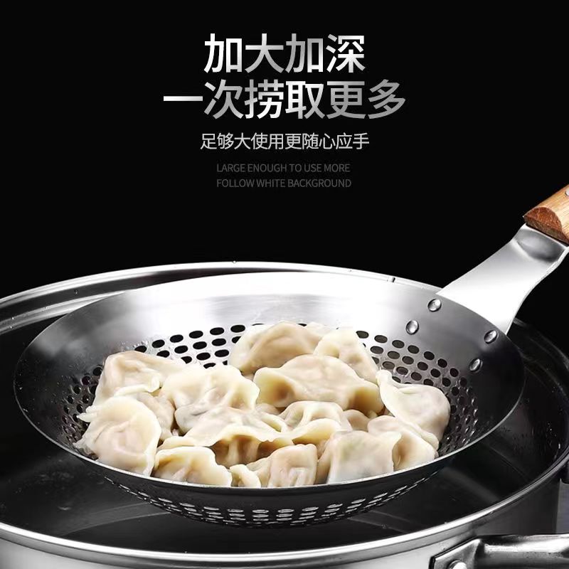 特厚不锈钢漏勺商用大号笊篱漏网厨师专用厨房一体成型油炸大捞勺