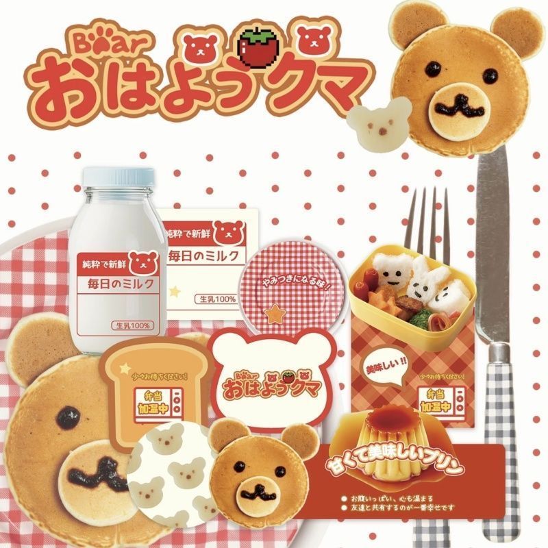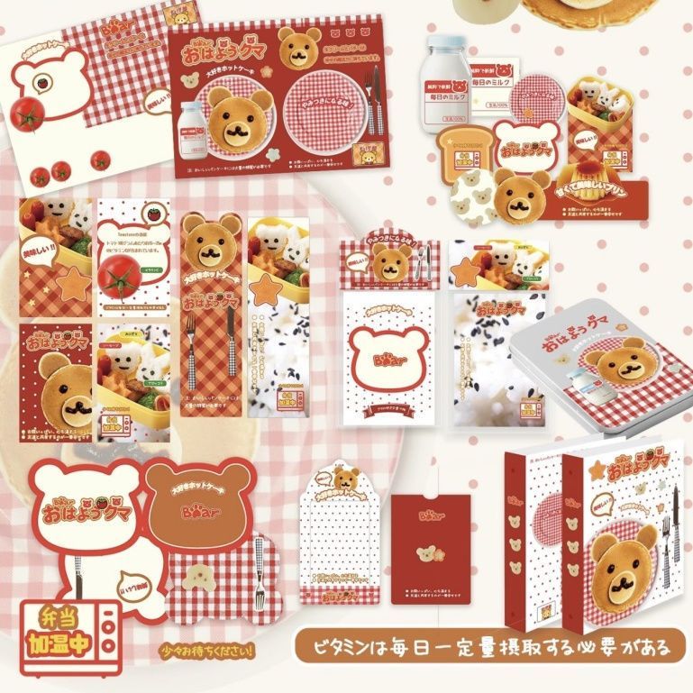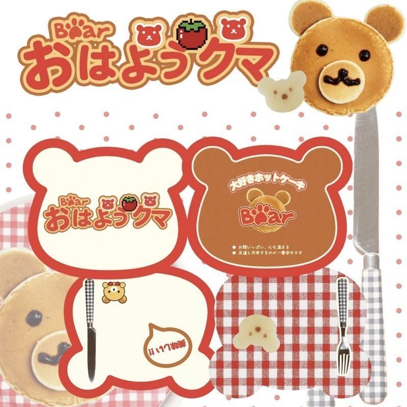 可爱小熊松饼文创打包材料出卡套装异形折页覆膜卡片贴纸美食素材