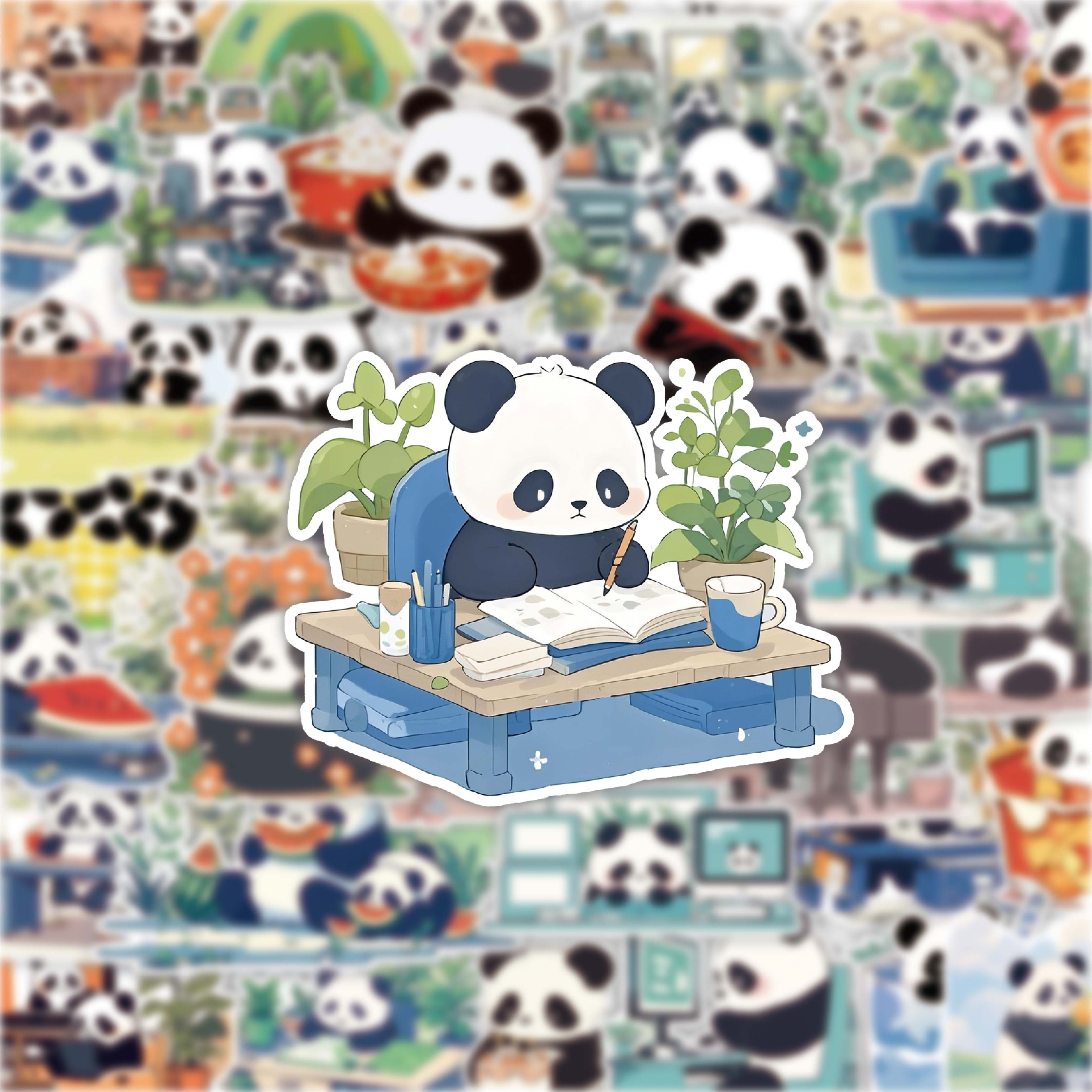 120张可爱熊猫日常贴纸卡通桌面手账笔记本ipad装饰防水贴画无痕