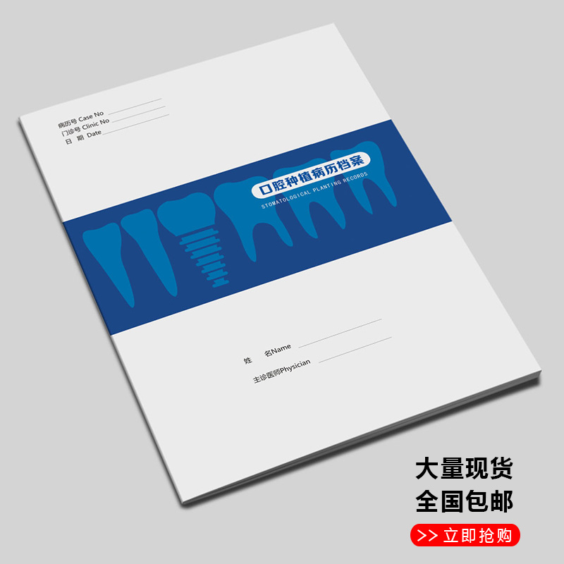 口腔种植病历卡档案本牙科A4医院记录本矫正正畸病例本知情同意书
