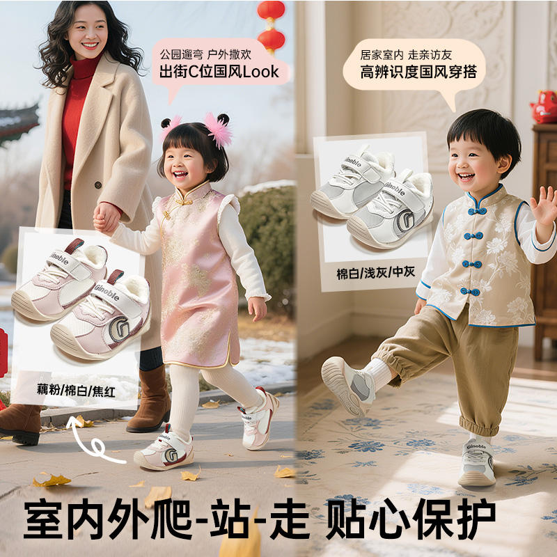 基诺浦机能鞋2025冬新款2级保暖童鞋步前加绒婴儿鞋宝宝鞋GB2498