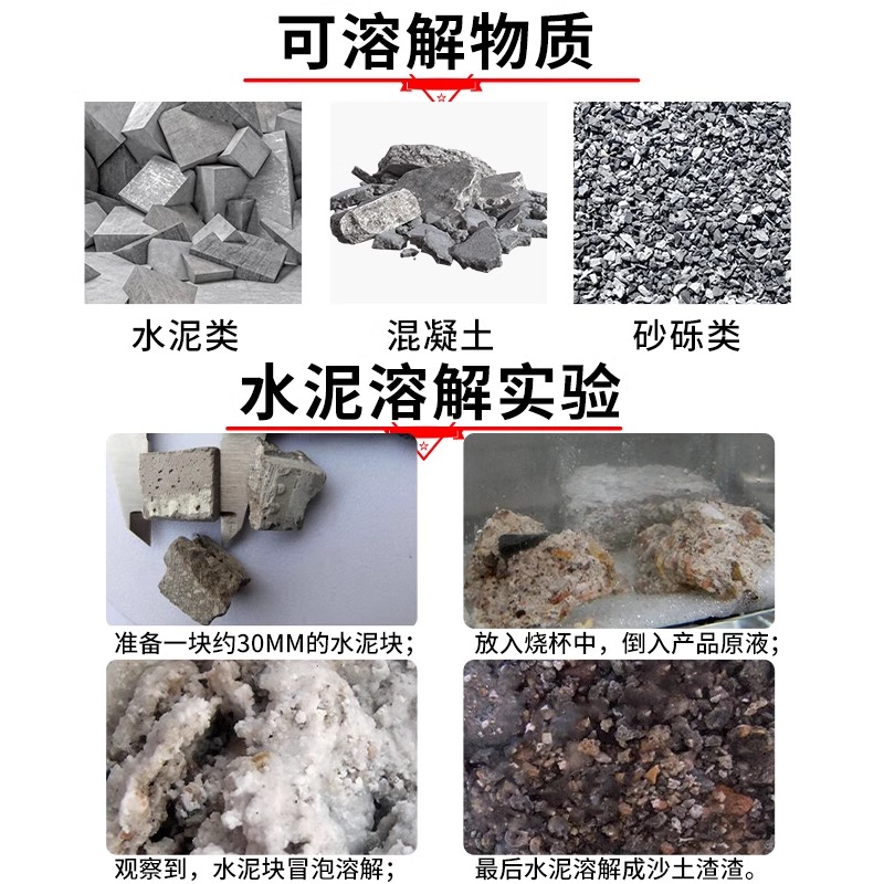 水泥溶解剂下水道厕所管道堵塞疏通装修水泥克星沙子强力分解神器