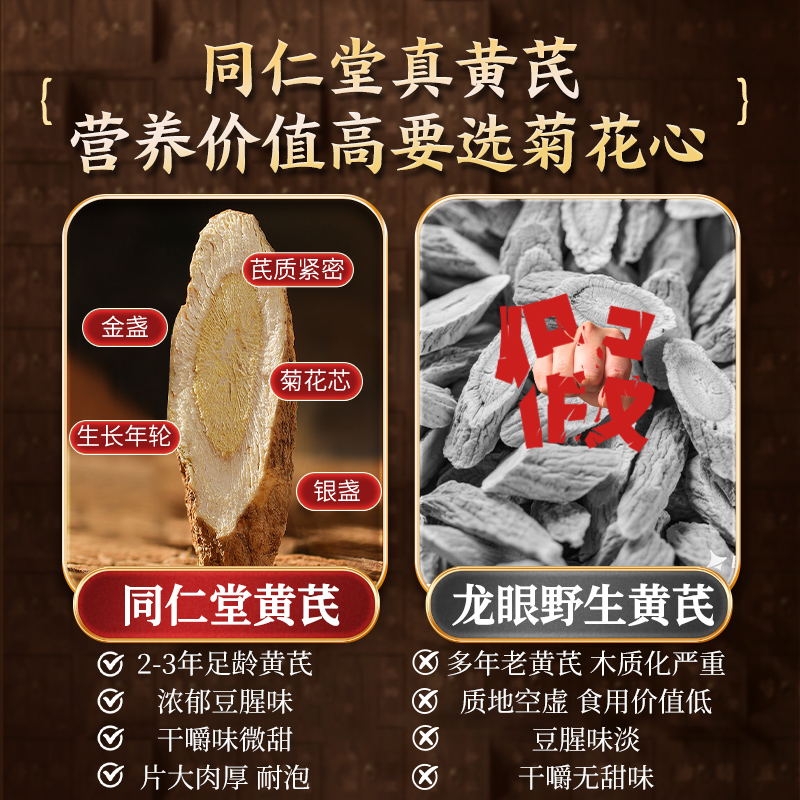 北京同仁堂黄芪片正品野中生药材官方旗舰店北芪特级泡水当归党参
