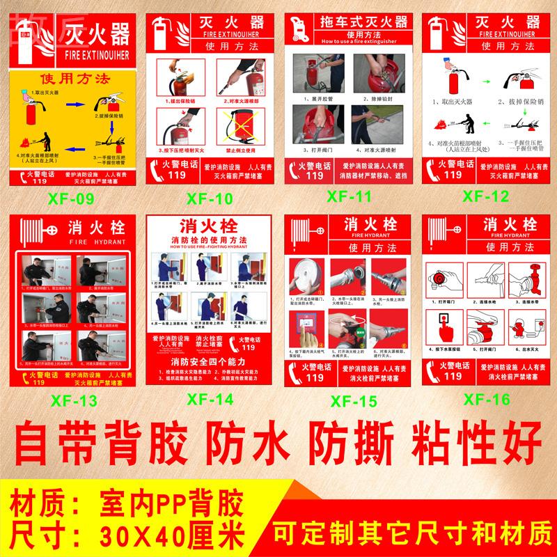 灭火器使用方法放置点消火栓使用方法提示牌消防安全四个能力二氧化碳干粉手推车灭火器使用方法标识警告标志