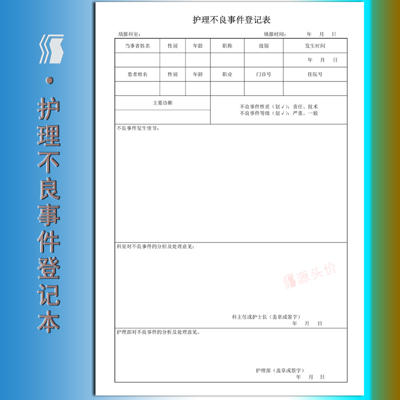 护理不良事件登记本上报记录表追踪报告科室分析讨论医院严重病人