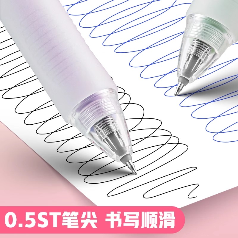 ST刷题笔高颜值按动中性笔圆珠笔黑色水笔小学生专用考试0.5速干碳素笔水性黑笔按压式做笔记签字笔非按斤卖