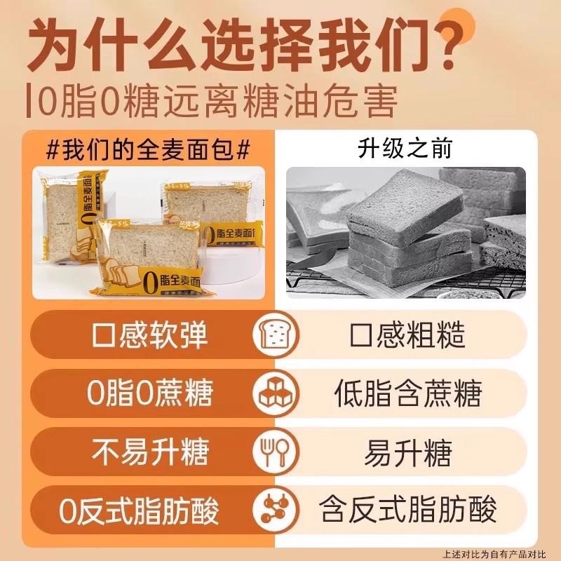 全麦面包0脂无糖精减专用肥代餐营养早餐整箱纯黑麦丁官方旗舰店