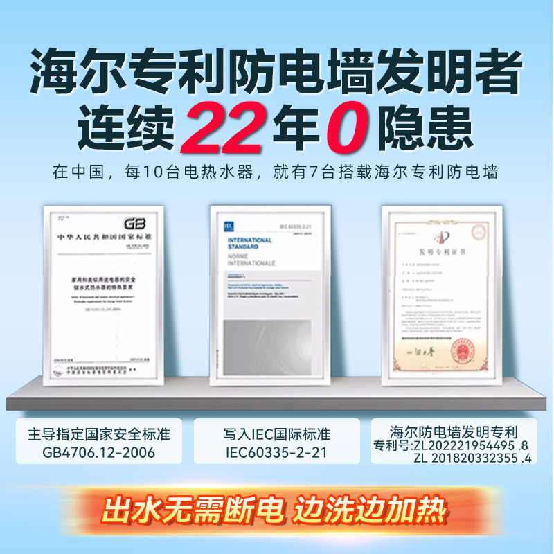 海尔智家统帅电热水器家用小型一级能效60升速热节能租房洗澡X5