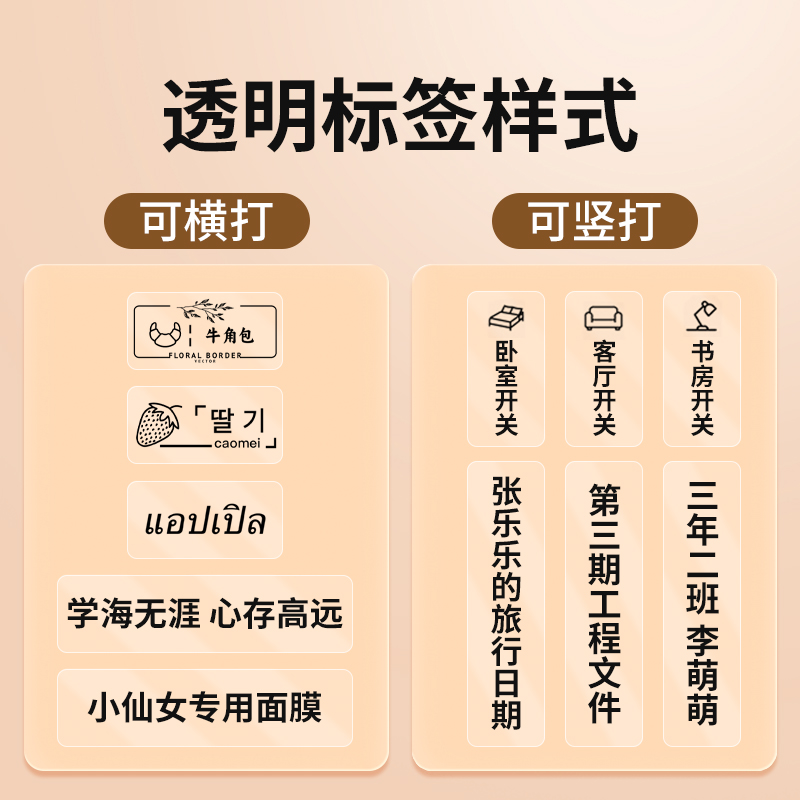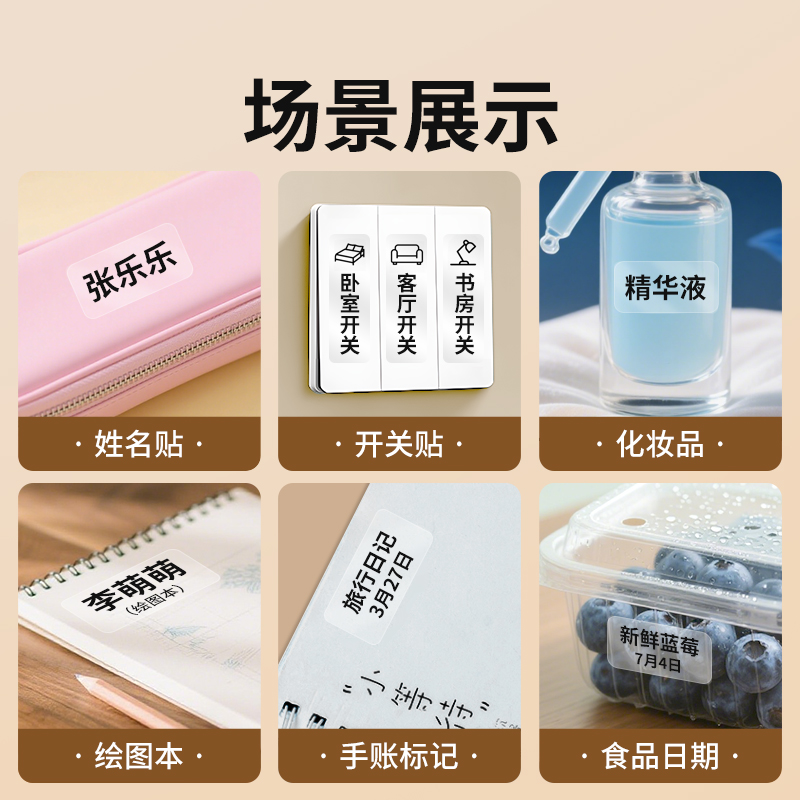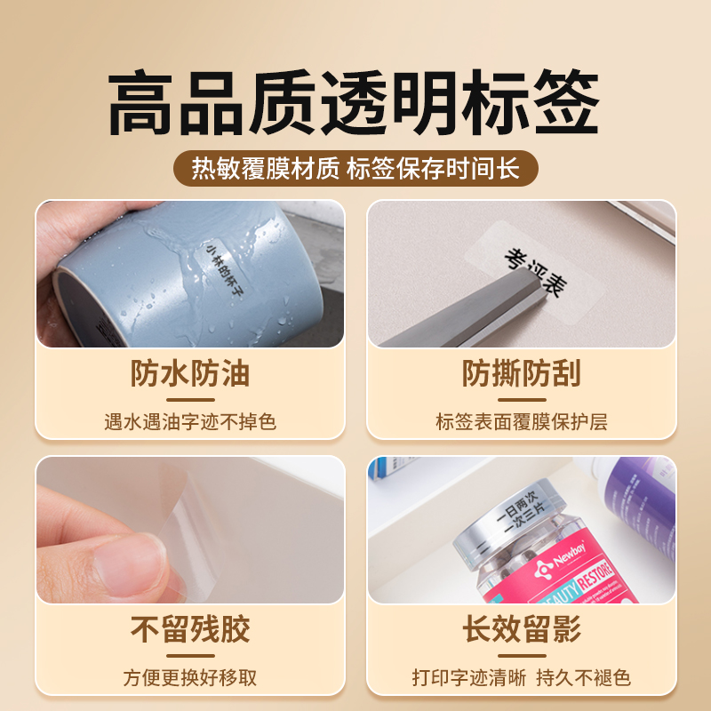 得力Q10透明标签打印机蓝牙连接小型热敏打码机打印食品化妆品分类不干胶贴纸二维码条码价格有效期标签