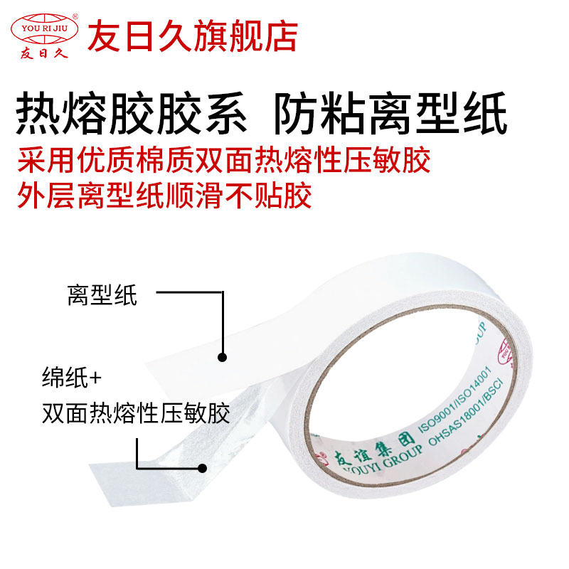 友谊强力双面胶棉纸双面宽胶带厂家批发强力固定文具办公用品学生用手工棉纸手撕健康环保儿童手工高粘双面胶