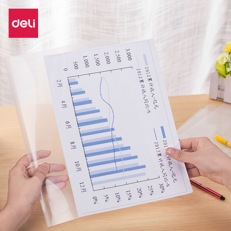 得力抽杆夹a4资料夹拉杆夹加厚讲义会议报告夹试卷夹书皮夹书夹子学生用资料册水滴夹透明办公用品抽杆文件夹