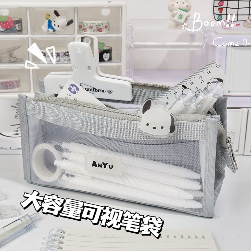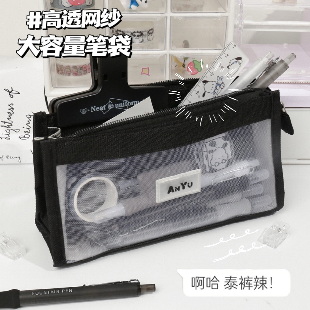 网纱笔袋大容量简约文具袋五层小学生可带入考场铅笔袋考试