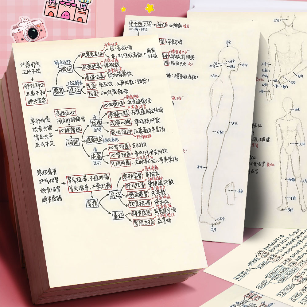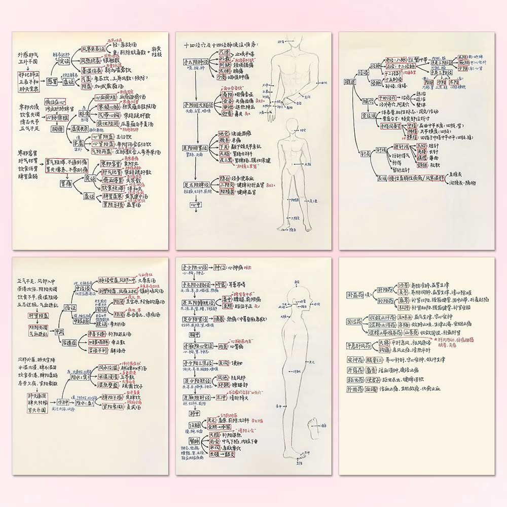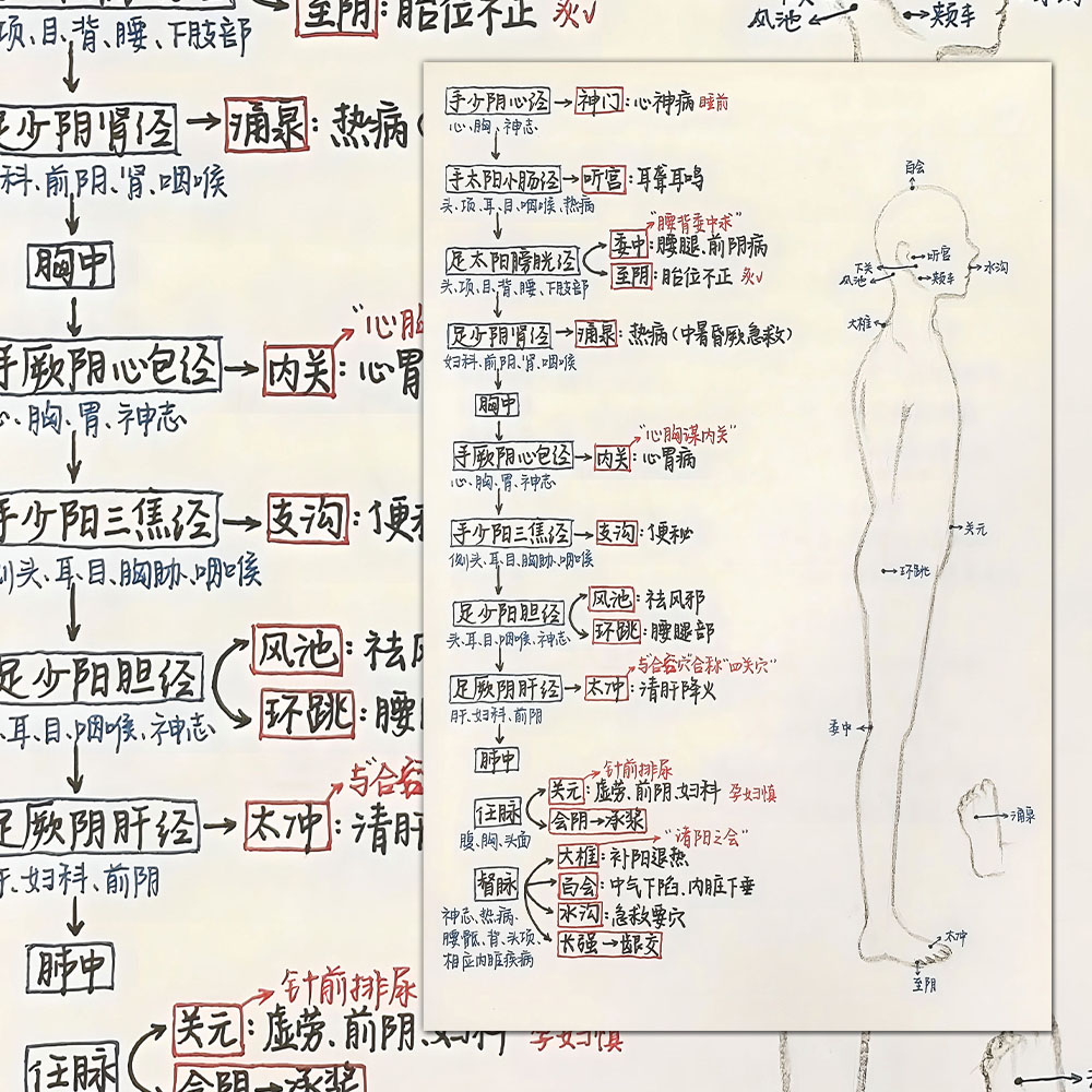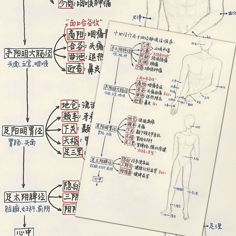 中医养生十四经脉流注顺序科普医学生手写笔记重点汇总学习贴纸