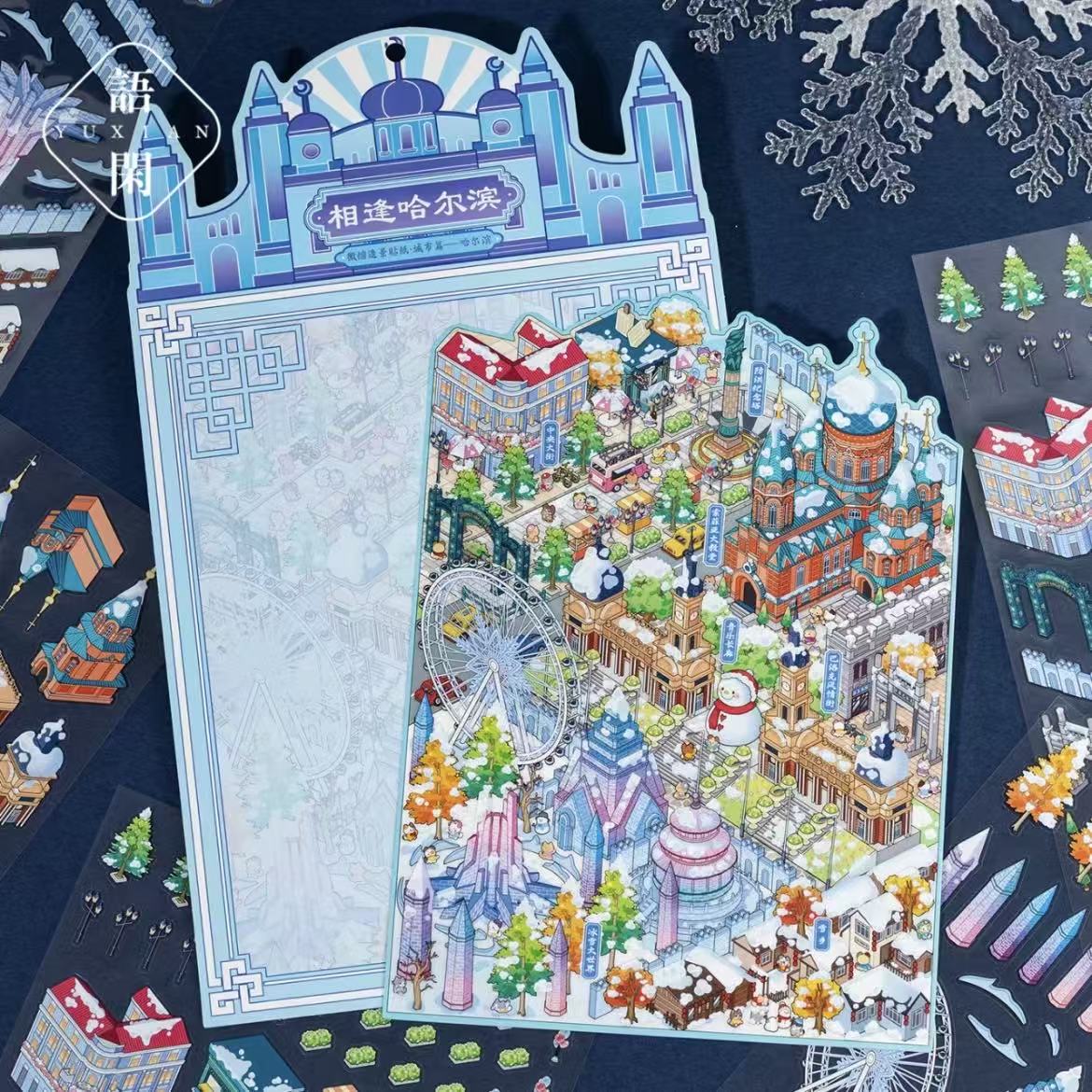 语闲 ·敦煌 哈尔滨城市篇10.0 9.0造景贴纸3D立体微观大场景解压