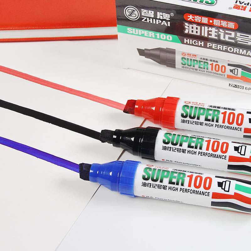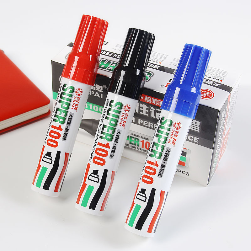 智牌油性记号笔大笔划10MM大容量粗笔画快递物流可加墨水防水不掉色大号大头笔方头扁头ZP-100