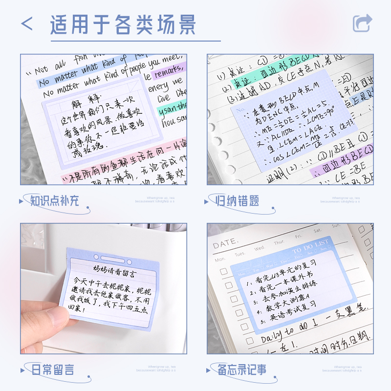 任意扩张贴便利贴不遮挡文字透明可折叠考研小学生用可撕有粘性便签贴纸初高中生记笔记贴订正错题办公便利贴