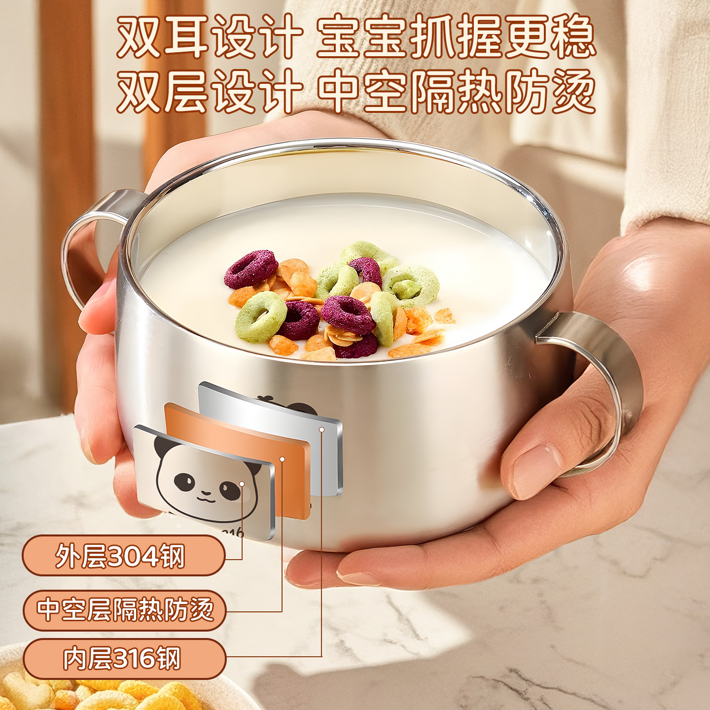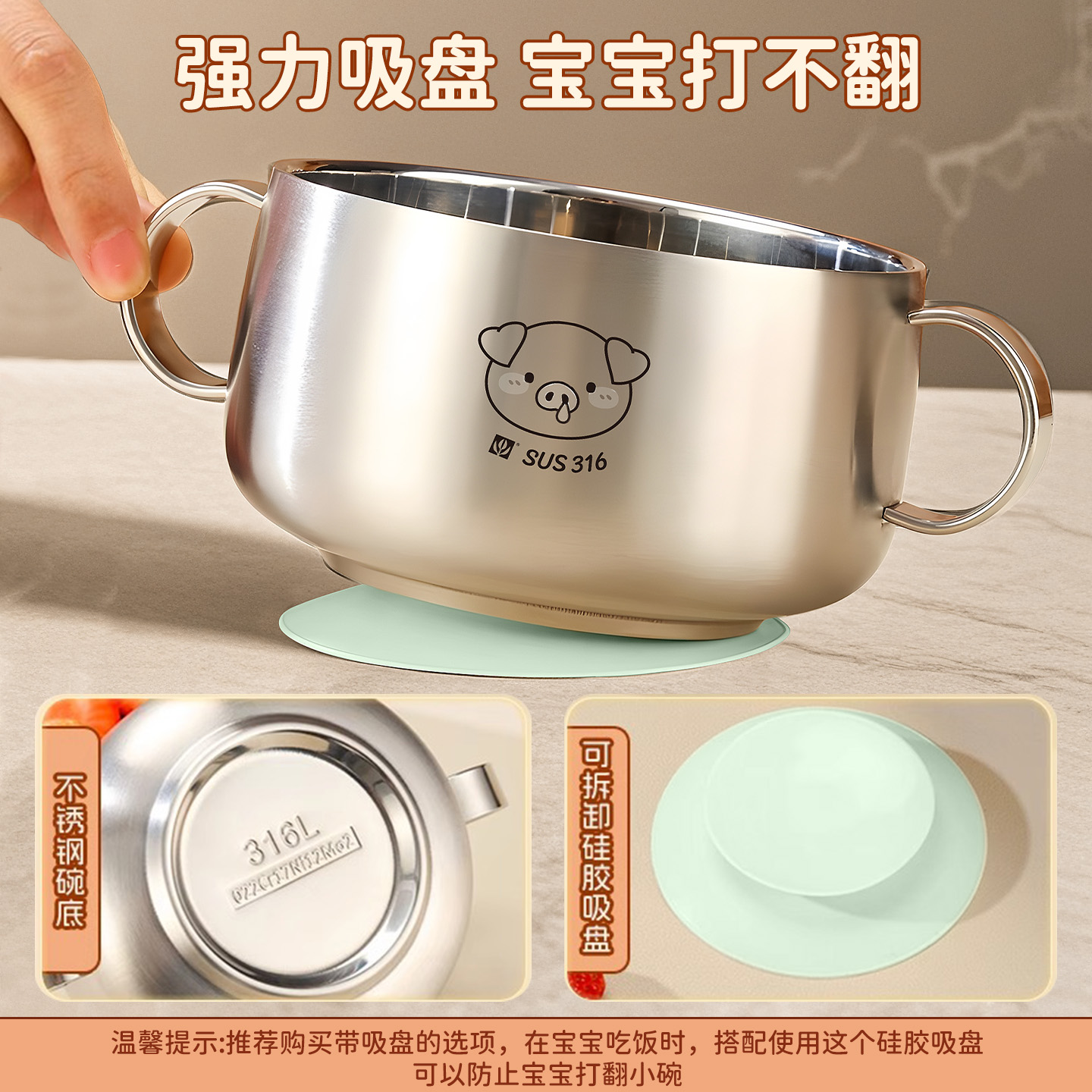 316不锈钢儿童碗6岁以上食品级小学生上学吃饭专用汤碗带盖初中生